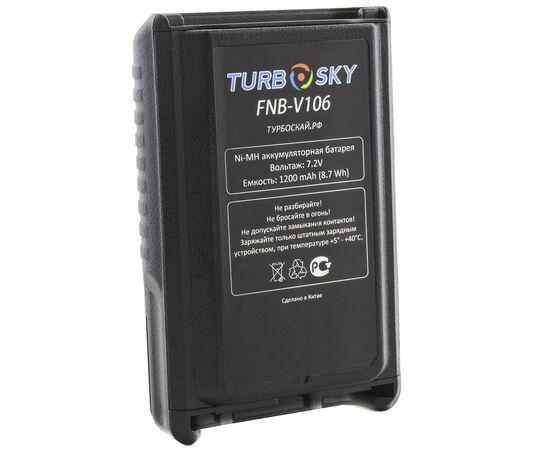 TurboSky FNB-V106 предназначен для радиостанций фирмы Vertex. Работоспособность составляет около 8 часов.