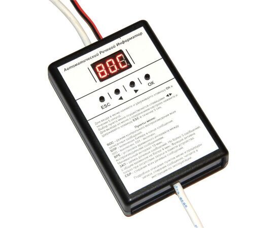 1. Возможность записи до 5 речевых сообщений, с последующим воспроизведением в порядке очереди с установленными интервалами времени. Минимально возможный интервал составляет 10 мин. Точность установки временного интервала 1 мин.