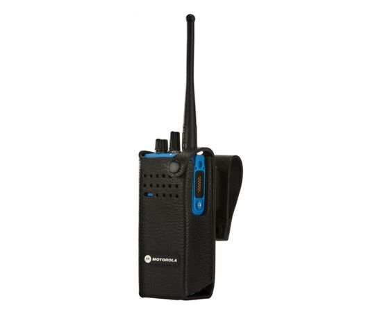 Чехол Motorola PMLN6096 оснащен поворотной клипсой и кожаной петлеё на ремень, длина которой составляет 5 см. Данная модель не имеет выреза под экран и клавиатуру.