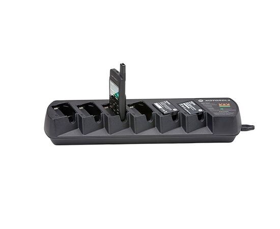 Motorola PMLN6688A - Шестиместное настольное зарядное устройство (Euro Plug) предназначено для зарядки литий-ионных аккумуляторных батарей радиостанций SL4000, SL4000e, SL4010, SL4010e, а также широкого ряда других серий аккумуляторов Motorola, кроме батарей с функцией IMPRES. При помощи специальных комбинированных слотов ЗУ можно заряжать аккумуляторы совместно или отдельно от раций, при чем каждая батарея заряжается отдельно. Корпус устройства изготовлен из прочного высококачественного пластика.