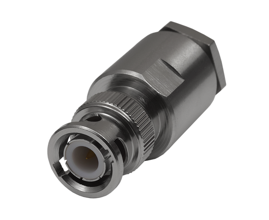 ВЧ разъем BNC серии, вилка, обжимной, под коаксиальный радиочастотный кабель RG-213, пин под пайку.
