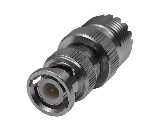 ВЧ переходник (адаптер) BU-312, BNC вилка – UHF (PL-259) розетка, конструктив прямой.