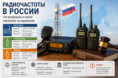 Разрешённые радиочастоты в России и ответственность за нарушения Использование радиостанций в Российской Федерации регулируется законодательством. Ниже приведены конкретные частоты, разрешённые для граждан, а также статьи закона, по которым наступает ответственность при нарушениях. Частоты, разрешённые без лицензии CB (27 МГц)...