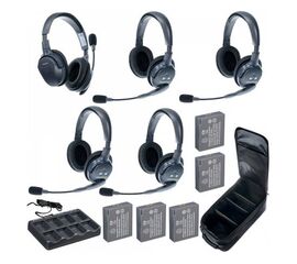 Комплект Eartec HUB 5-D на 5 абонентов с гарнитурами 5 Double Headsets. Батареи, зарядное устройство и сумка в комплекте