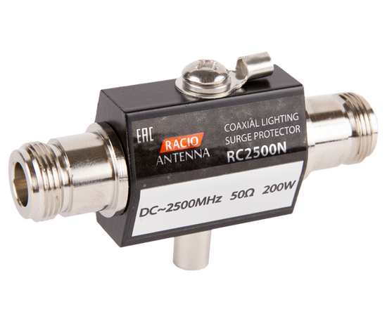 Racio Antenna RC2500N используется для защиты от разрядов грозы, атмосферного электричества и попадания высокого напряжения в коаксиальный кабель.