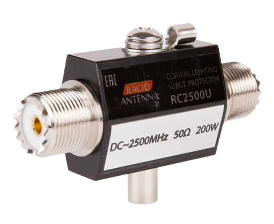 Racio Antenna RC2500U используется для защиты от разрядов грозы, атмосферного электричества и попадания высокого напряжения в коаксиальный кабель.