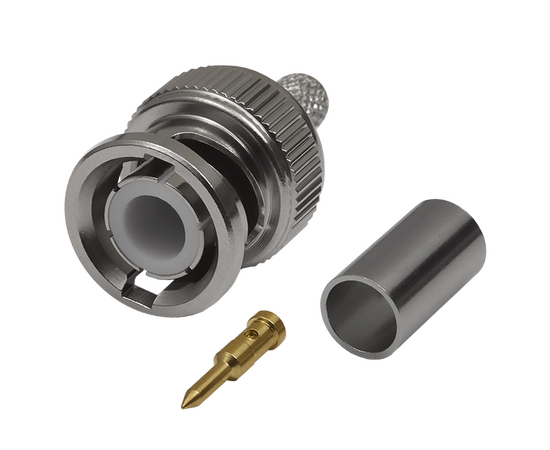 ВЧ разъем B-111F, BNC серии, вилка, обжимной, под коаксиальный радиочастотный кабель RG-58, пин под пайку.