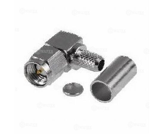 Угловой SMA разъем, S-121F NGT (покрытие корпуса - никель, покрытие центрального контакта - золото, диэлектрик - тефлон), папа (вилка), обжимной, под коаксиальный кабель RG-58 /U.