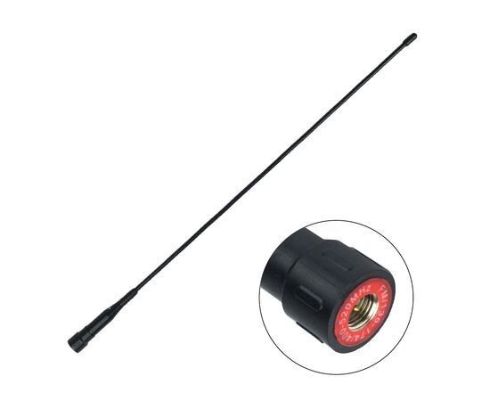 Гибкая антенна, двухдиапаозонная, длина 38 см, соединитель SMA (m) Совместимость: А-18, А-23, А-24, А-25, А-41, А-43, А-73 VHF, А-73 UHF, РК-301Н размеры: 15*15*420мм, 30г.