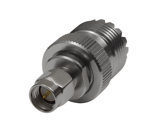 ВЧ переходник SU-312, SMA вилка- UHF (PL-259) розетка, конструктив прямой.