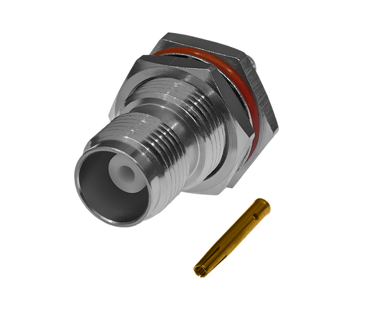 ВЧ разъем T-231F TNC, розетка, приборно-кабельный с гайкой, обжимной, под коаксиальный кабель RG-58, пин под пайку