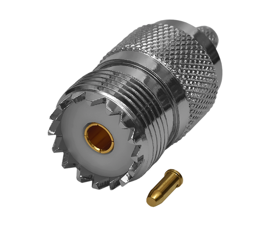 ВЧ разъем U-112F UHF, розетка, обжимной, под коаксиальный кабель RG-58, пин под пайку.