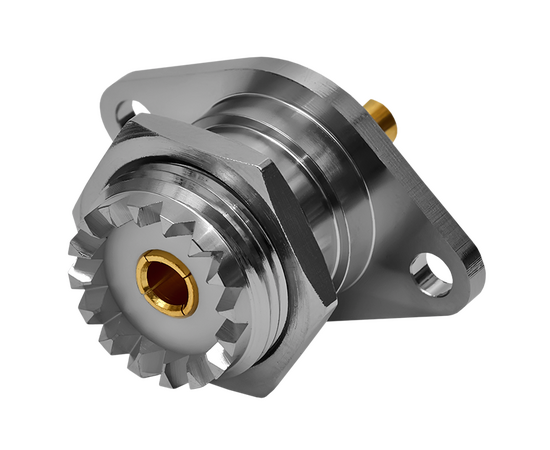 ВЧ разъем U-2452 UHF, розетка, приборный фланец под 2 винта, с гайкой, пин под пайку.