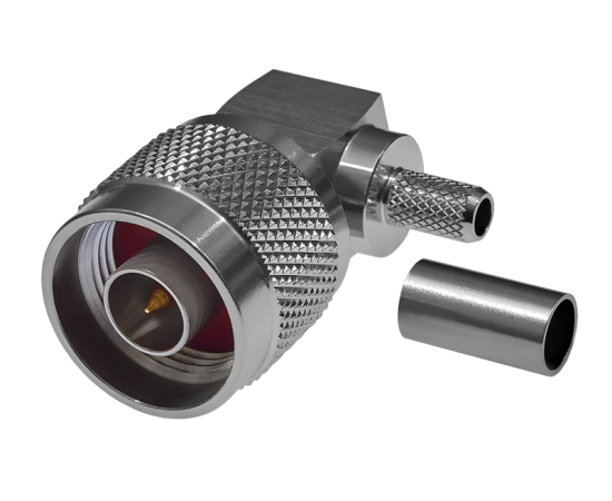 ВЧ разъем N-121F N, вилка, угловой, обжимной, под коаксиальный кабель RG-58, пин под пайку