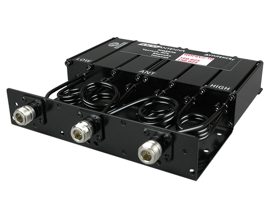 Дуплексер Racio Antenna RDF6V2-10 изготовлен на шестизвенных спиральных резонаторах по режекторной схеме.