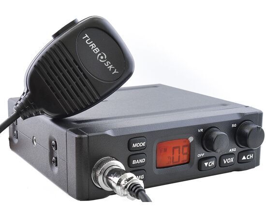 Turbosky CB-3 - мобильная радиостанция СИ-БИ диапазона, работающая в частотах 26,965 - 27,410 МГц, имеющая в комплекте тангенту, провода для подключения и запчасти для крепления.