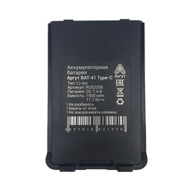 Аккумуляторная батарея Аргут А-41 Li-ion 1500 мА·ч с USB Type-C.Артикул RU52206Важно! Не совместима с Зарядной базой Аргут А-24/А-36/А-41