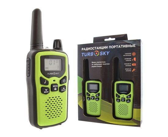 Комплект раций 2 шт TurboSky T35 GREEN. Рация зеленого цвета. Рация детская TurboSky T35.
