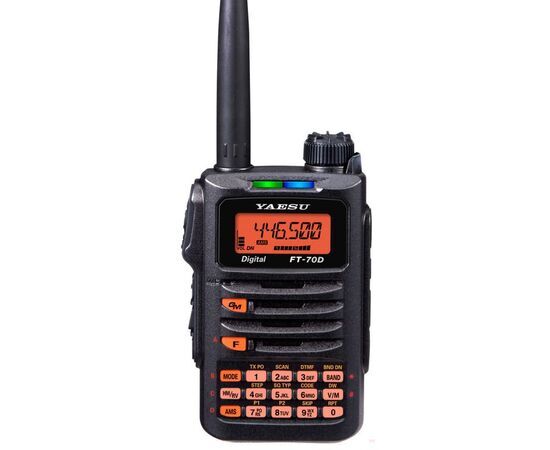Yaesu FT-70DR – это профессиональная портативная радиостанция, передающая сигнал в двух диапазонах: 136–174/400–470 МГц. Принимать сигнал она может в диапазоне от 108 до 579 МГц. Модель оснащена экраном и клавиатурой с подсветкой. Кроме клавиш для набора номера канала есть кнопки прямого доступа к различным функциям. Рация поддерживает как аналоговый режим FM, так и цифровой режим C4FM Digital. Выходная мощность – до 5 Вт. Мощность фронтального динамика – 700 мВт. Благодаря фирменным разработкам рация обеспечивает высококачественный звук.